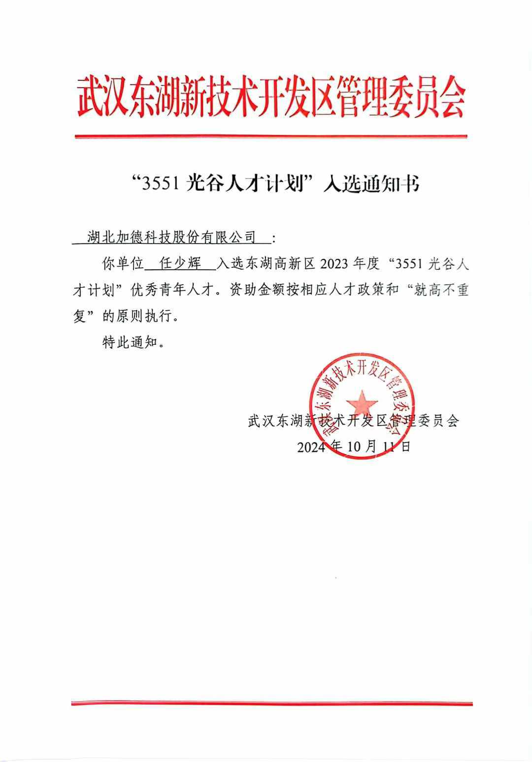 經(jīng)過一系列嚴(yán)格的人才注冊、資格審核、答辯評審、積分排序、實地考察等工作, 湖北加德科技有限公司 總工程師 任少輝入選 202 3 年度 “3551光谷人才計劃” 優(yōu)秀青年人才。 ” 3551光谷人才計劃”是武漢東湖高新區(qū)的引才計劃,聚焦高新區(qū)重點(diǎn)產(chǎn)業(yè)領(lǐng)域和關(guān)鍵節(jié)點(diǎn)需求,持續(xù)集聚...MORE →