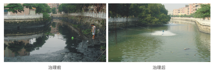 某地一條納污河道,進(jìn)入河道的有大量的工業(yè)污水,生活污水和固體垃圾,成分十分復(fù)雜。由于污染源的多樣性和復(fù)雜性,極大地增加了治理的難度。采用凈水技術(shù)進(jìn)行修復(fù)后,目前河水惡臭味徹底消除,水質(zhì)明顯改善,水體感官效果明顯增強(qiáng),水生生物逐漸恢復(fù)。