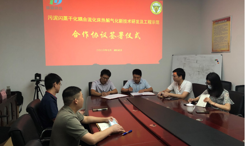 7月24日上午,東南大學(xué)江北新區(qū)創(chuàng)新研究院與湖北加德科技股份有限公司在武漢正式簽署合作協(xié)議。黃亞繼博士、我司總經(jīng)理張立民出席簽約儀式,雙方就污泥閃蒸干化耦合流化床熱解氣化工程示范項(xiàng)目的技術(shù)研發(fā)及工程設(shè)計(jì)進(jìn)行了深度交流。