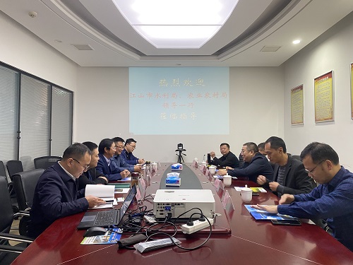 2021年11月18日,浙江省江山市水利局黨委書記、局長姜孝榮等領(lǐng)導(dǎo)一行蒞臨我公司調(diào)研,公司董事長周桃紅、總經(jīng)理張立民等領(lǐng)導(dǎo)進(jìn)行了熱情接待,并舉行了座談會議。