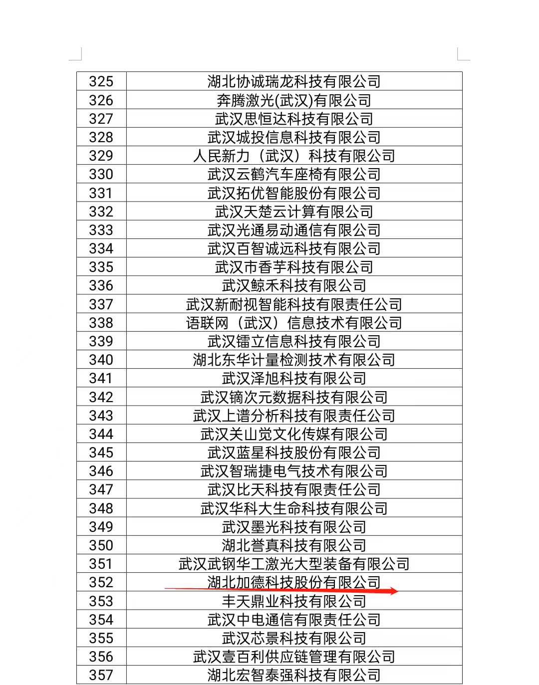 2022年12月9日,湖北省經(jīng)信廳公布我省首批創(chuàng)新型中小企業(yè)名單,湖北加德科技股份有限公司成功入圍。