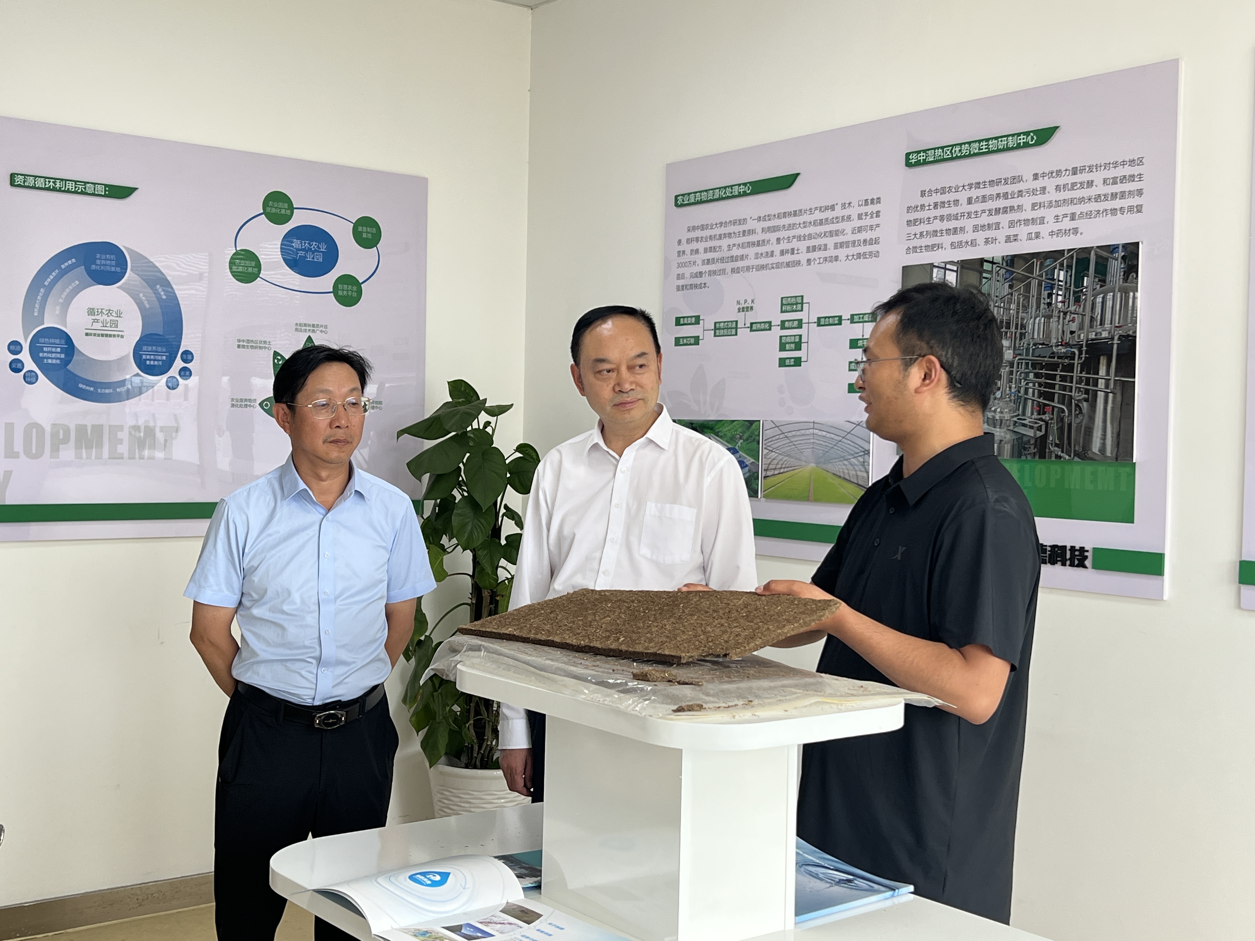 公司總工程師任少輝帶領(lǐng)鄺遠平董事長一行參觀加德科技展廳,深入直觀的了解加德科技污水、污泥及農(nóng)業(yè)固廢處理核心研發(fā)技術(shù)。