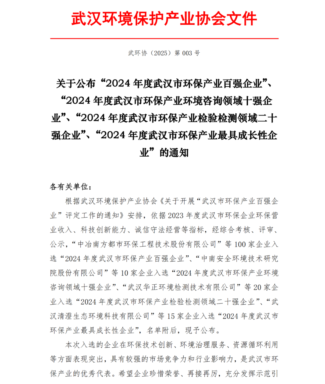 2025年4月14日,武漢環(huán)境保護(hù)產(chǎn)業(yè)協(xié)會公布“2024年度武漢市環(huán)保產(chǎn)業(yè)百強企業(yè)”名單。加德科技憑借扎實的綜合實力及顯著的創(chuàng)新能力成功入選,榮獲“2024年度武漢市環(huán)保產(chǎn)業(yè)最具成長性企業(yè)”,這一權(quán)威認(rèn)證不僅是對加德科技綜合實力和行業(yè)領(lǐng)域的充分肯定,也為企業(yè)的未來發(fā)展注入了強勁動能!