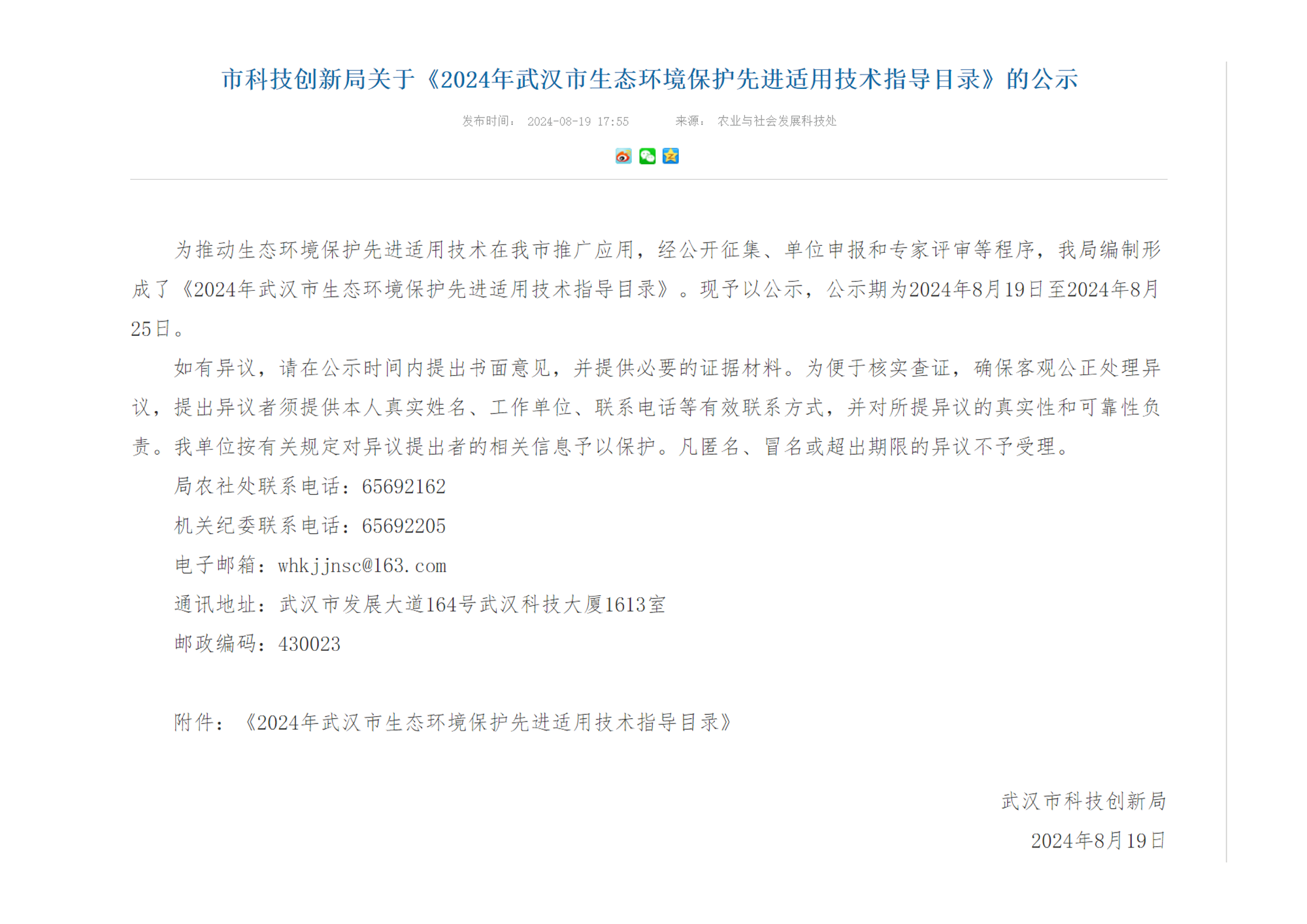 2024年武漢生態(tài)環(huán)境保護先進適用技術(shù)名錄